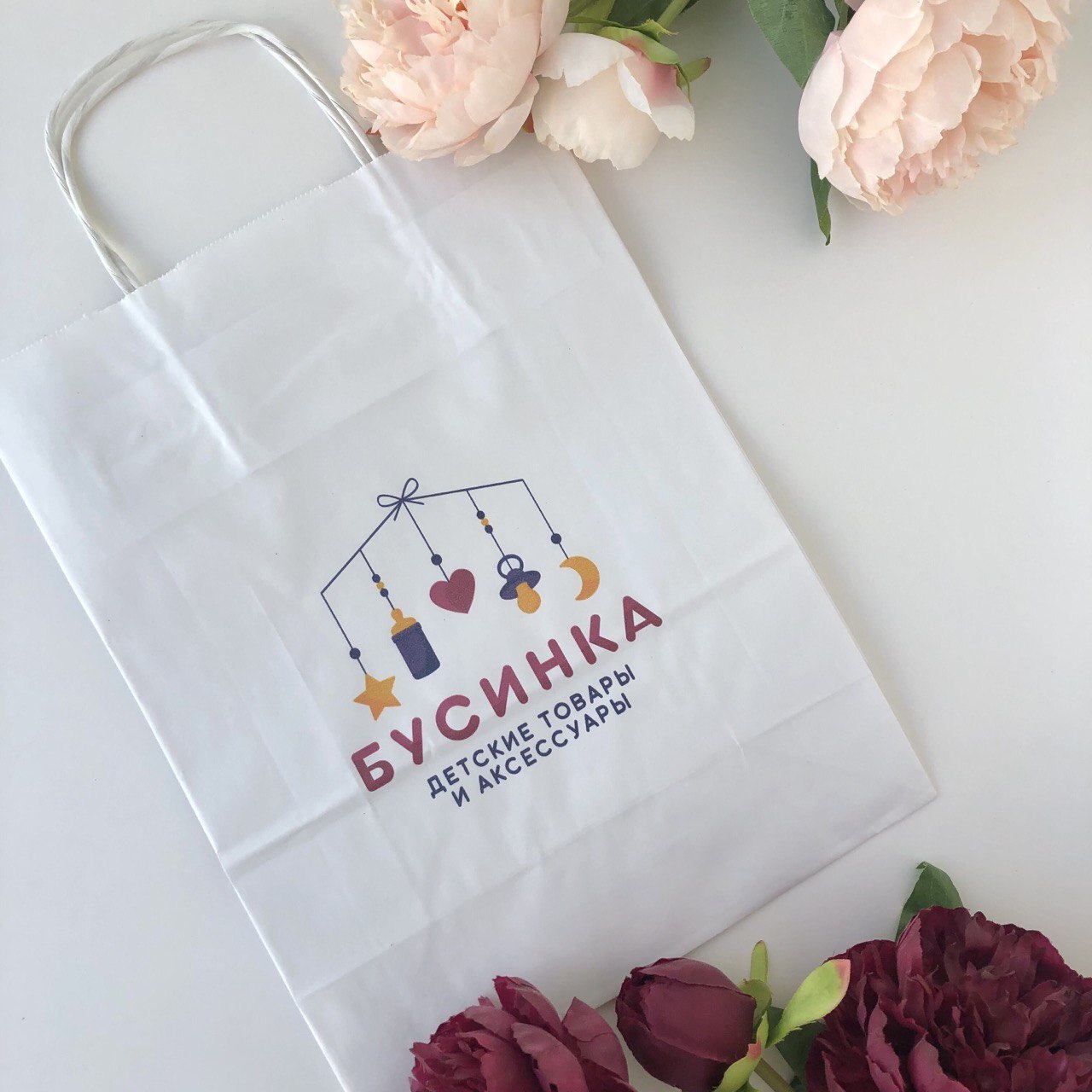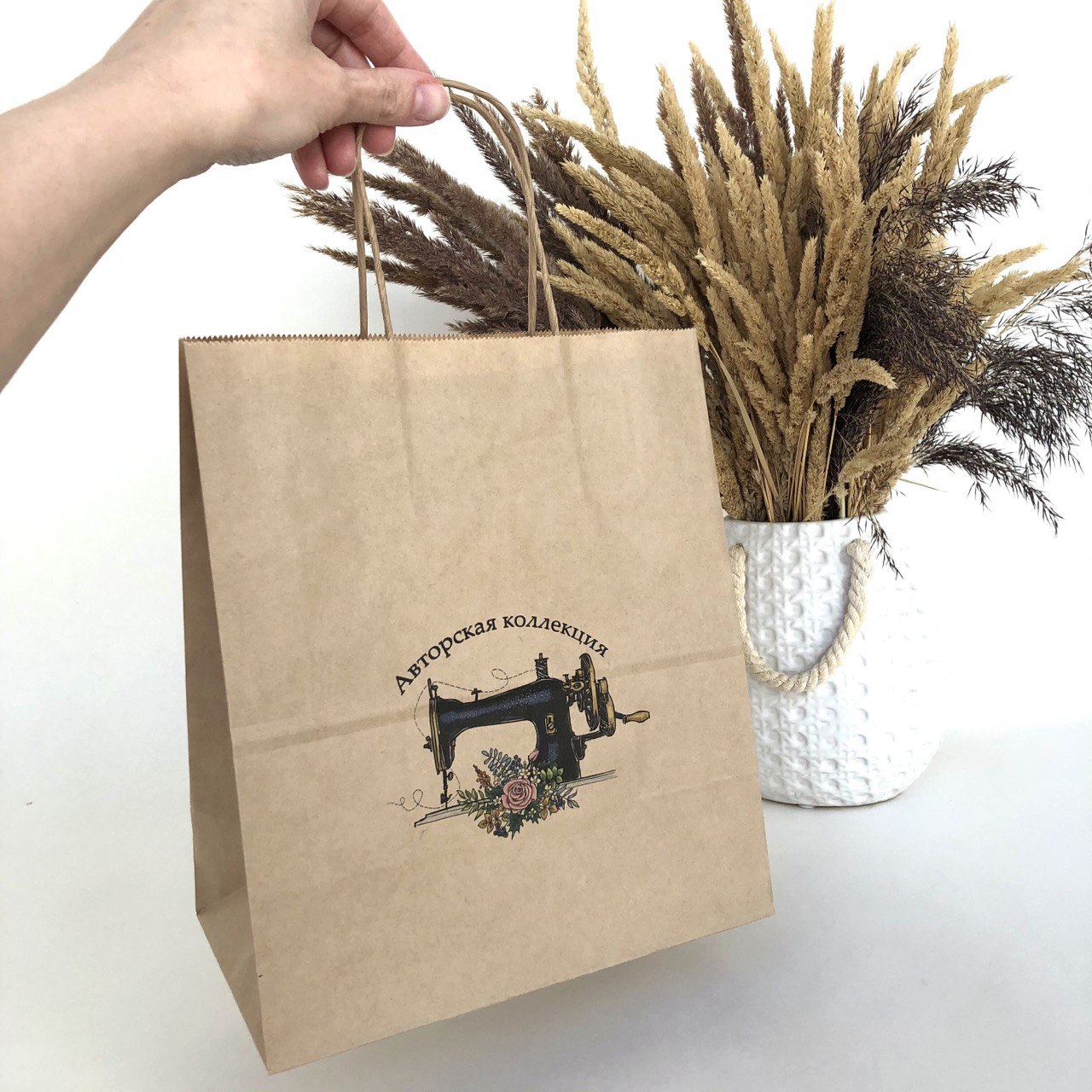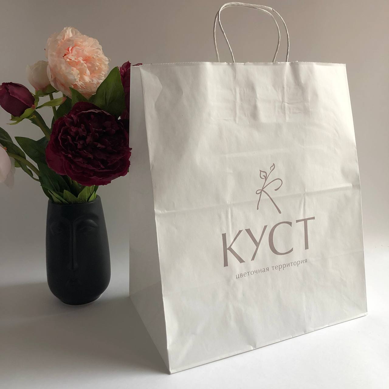 Плотность 120 гр, крученые ручки, белые бежевые пакеты