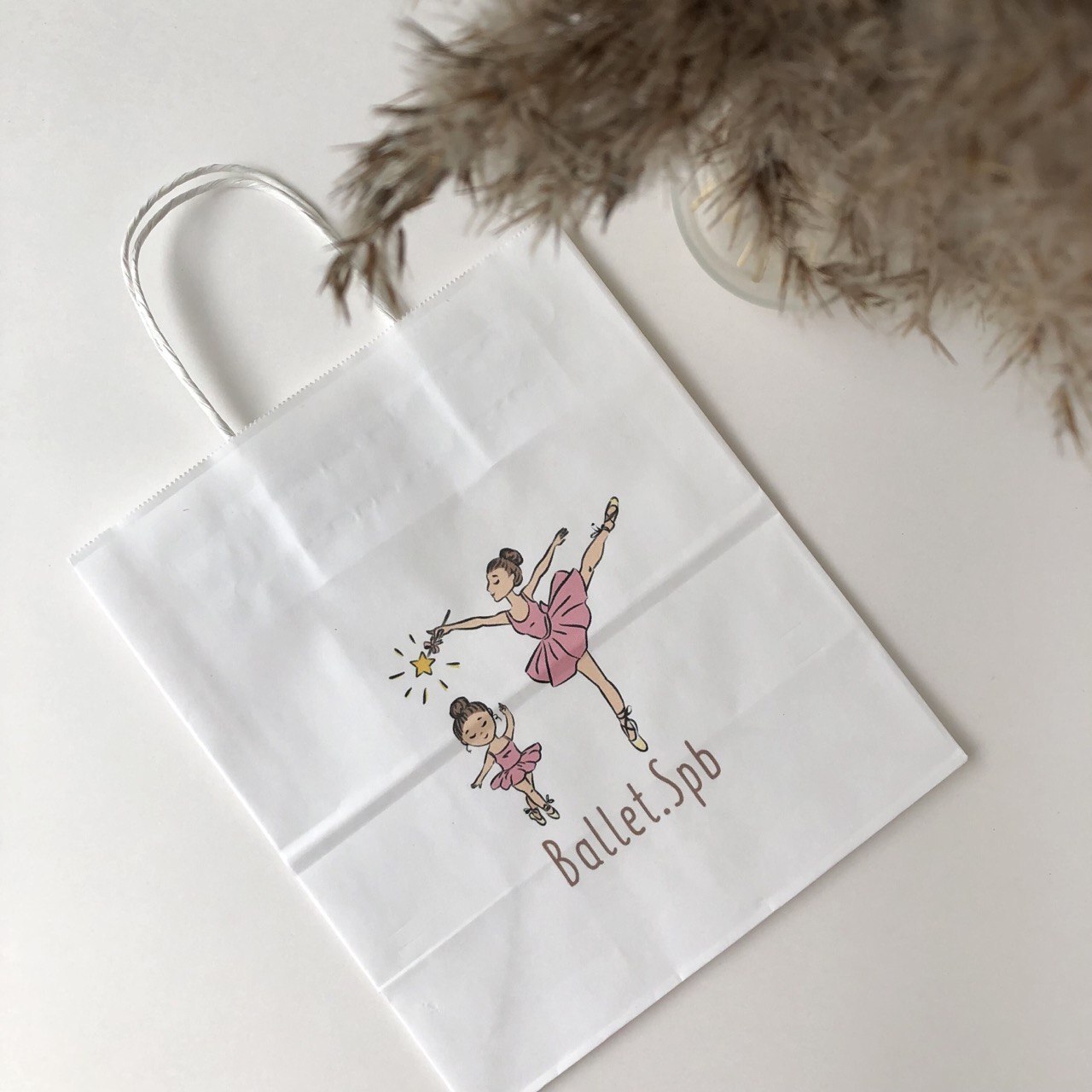 Плотность 120 гр, крученые ручки, белые бежевые пакеты